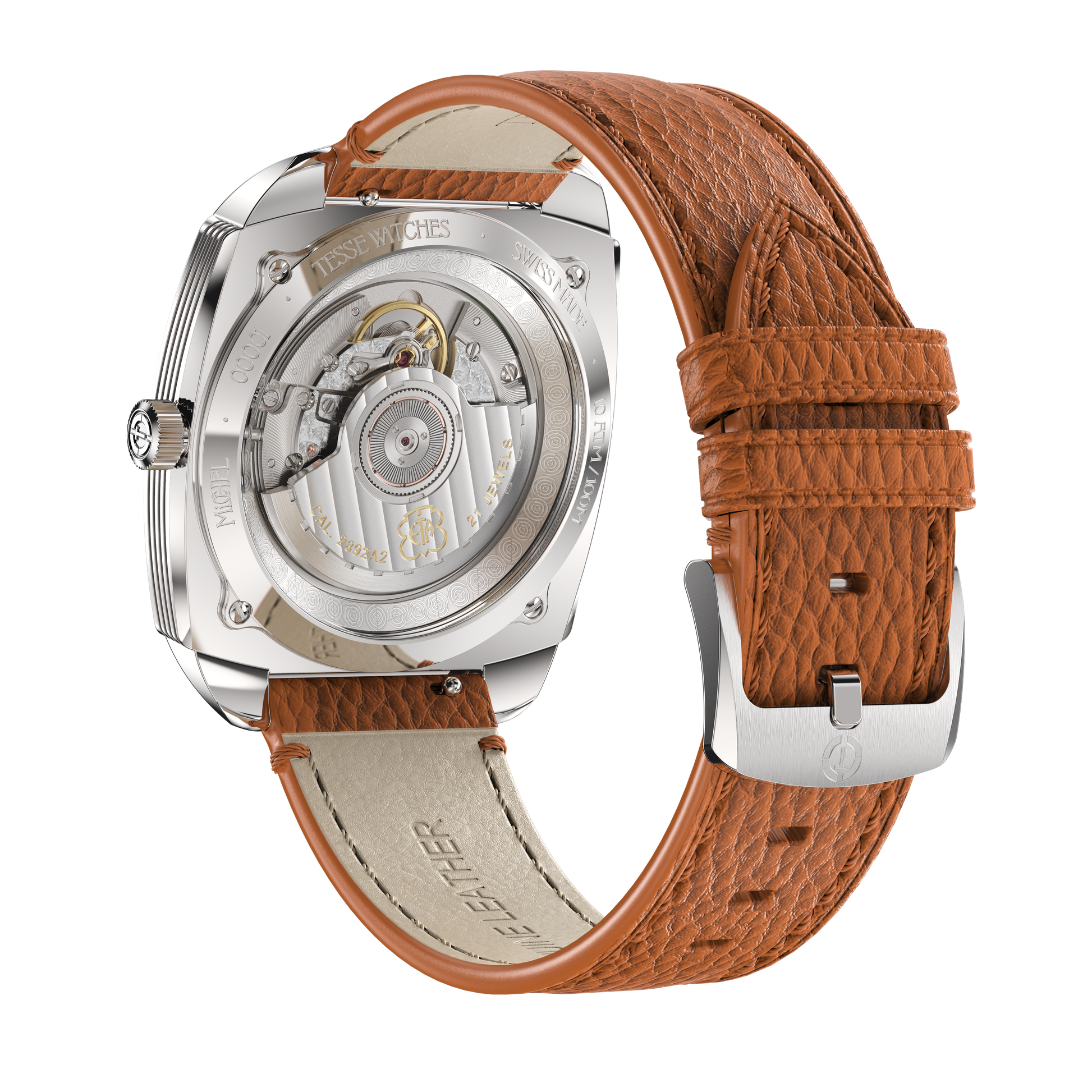 Blending 1970s-inspired geometry with contemporary detail, the Architect embodies Tessé’s vision of design-led watchmaking. Its layered dial construction, precise Swiss movement, and refined casework showcase a balance of structure and creativity — a modern expression of timeless craftsmanship.