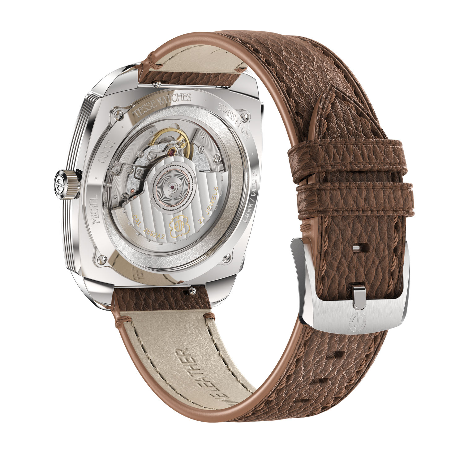 Blending 1970s-inspired geometry with contemporary detail, the Architect embodies Tessé’s vision of design-led watchmaking. Its layered dial construction, precise Swiss movement, and refined casework showcase a balance of structure and creativity — a modern expression of timeless craftsmanship.